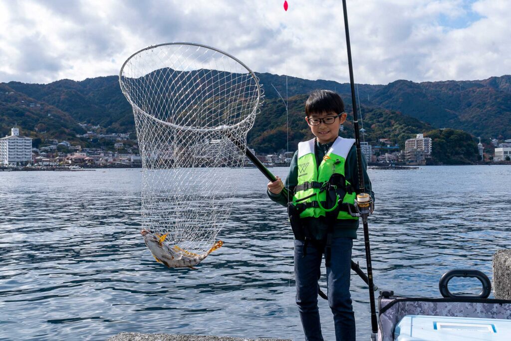 今回のプログラムは、網代漁港を舞台にした特別な釣り体験です。普段は釣りが禁止されている漁港の一角で釣りを楽しむだけでなく、釣った魚を自分でさばく調理体験や海の今を知る環境学習を組み合わせ、親子で楽しんでいただける内容をご用意しました。