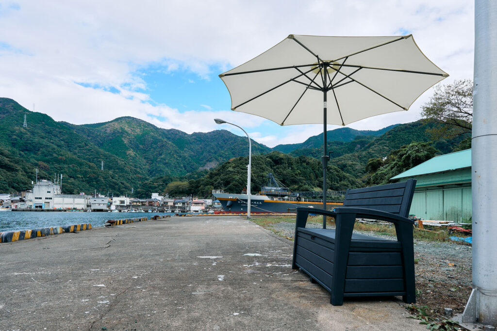 天然の良港、安良里漁港。第一期オープンは向山岸壁と多目的広場