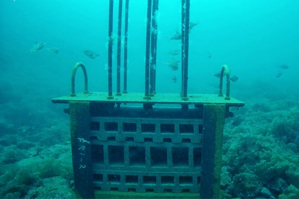 水産資源保護の取り組みも進めています。公益財団法人 日本釣振興会では伊豆漁業協同組合安良里支所に漁礁を寄贈し、2025年の夏に向山岸壁と網屋崎岸壁に人工魚礁を設置しました。設置後1ヶ月後の水中ドローン確認では、ネンブツダイやメジナの群れ、クロダイやフエダイなどの中型魚、クエ・オオモンハタなどの根魚が観察できており、魚礁としての成熟に期待が持てる状況です。